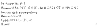 Summer Vibes é uma fonte de script desenhada à mão que captura a essência dos dias ensolarados e das brisas quentes das noites de verão. Com traços finos e irregulares, a fonte transmite um charme elegante e descontraído, ideal para projetos que buscam um toque pessoal sem perder o estilo. Sua textura de pincel e ritmo casual sugerem uma energia jovem e despreocupada, perfeita para branding de estilo de vida, pôsteres temáticos de praia e gráficos atraentes para redes sociais.